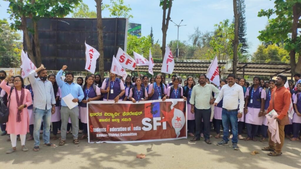 ಪ್ರತಿಭಟನೆಯಲ್ಲಿ ಎಸ್.ಎಫ್.ಐ. ಜಿಲ್ಲಾ ಕಾರ್ಯದರ್ಶಿ ರಮೇಶ್ ಹಾಸನ್, ಸಹ ಕಾರ್ಯದರ್ಶಿ ವಿವೇಕ್, ರಾಜ್ಯ ಉಪಾಧ್ಯಕ್ಷರು ಬಸವರಾಜ ಗುಳೆದಾಳ್, ಡಿವೈ.ಎಫ್.ಐ, ಎಂ.ಜಿ. ಪೃಥ್ವಿ, ಮುಖಂಡರು ಜಯಲಕ್ಷ್ಮಿ, ಸೌಮ್ಯ, ಧರ್ಮ, ಉಪನ್ಯಾಸಕರಾದ ಡಾ. ಮಹೇಶ್, ಡಾ. ಲೋಕೇಶ್ ಇನ್ನಿತರು ಉಪಸ್ಥಿತರಿದ್ದರು.
