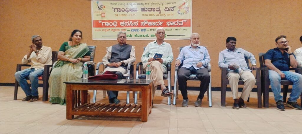 ಸೌಹಾರ್ದ ಕರ್ನಾಟಕದ ವತಿಯಿಂದ ಜನವರಿ 30 (ಗುರುವಾರ) ರಂದು ಸಂಜೆ ಹಾಸನದ ಎಂ.ಜಿ ರಸ್ತೆಯಲ್ಲಿರುವ ಗಾಂಧಿ ಭವನದಲ್ಲಿ ಮಹಾತ್ಮ ಗಾಂಧೀಜಿ ಹುತಾತ್ಮ ದಿನದ ಅಂಗವಾಗಿ ನಡೆದ ‘ಗಾಂಧಿ ಕನಸಿನ ಸೌಹಾರ್ದ ಭಾರತ’ಕಾರ್ಯಕ್ರಮವನ್ನು ಉದ್ಘಾಟಿಸಿ ಮಾತನಾಡಿದ ಅವರು ದೇಶದ ಸ್ವಾತಂತ್ರ್ಯ ಚಳುವಳಿಯ ನೇತಾರರಾಗಿ ಭಾರತವನ್ನು ಬ್ರಿಟೀಷ್ ಸಾಮ್ರಾಜ್ಯಶಾಹಿಗಳಿಂದ ವಿಮೋಚನೆಗೊಳಿಸಿದ ಗಾಂಧೀಜಿಯವರು ಭಾರತದ ಬಹುತ್ವ ಸಂಸ್ಕೃತಿ, ಜಾತ್ಯಾತೀತ ಪ್ರಜಾಪ್ರಭುತ್ವ ಮತ್ತು ಸೌಹಾರ್ದತೆಯ ಪರಂಪರೆಯ ರಕ್ಷಣೆ ಉಳಿವಿಗಾಗಿ ತಮ್ಮ ಜೀವವನ್ನೇ ತ್ಯಾಗ ಮಾಡಿದರು. ಆದರೆ ಇಂದು ದೇಶದ ಈ ಪರಂಪರೆಗೆ ದೊಡ್ಡ ಅಪಾಯ ಎದುರಾಗಿದೆ ಎಂದು ಆತಂಕ ವ್ಯಕ್ತಪಡಿಸಿದರು ಗಾಂಧೀಜಿವರ ತತ್ವ ಮತ್ತು ಅವರು ನಂಬಿದ ಬಹುತ್ವದಲ್ಲಿ ಏಕತೆಯ ಆಧಾರದಲ್ಲಿ ದೇಶವನ್ನು ಕಟ್ಟಬೇಕಿದೆ ಎಂದು ನುಡಿದರು.